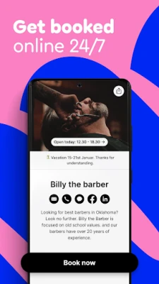 Geef uw klanten de vrijheid om 24 uur per dag, 7 dagen per week afspraken te plannen, zonder dat u daarvoor een eigen website nodig heeft. Billdu Appointments omvat een volledig aanpasbare boekingswebsite, waarmee uw cliënten eenvoudig en snel een reservering kunnen maken. Beheer alle binnenkomende boekingen moeiteloos via uw telefoon of tablet, en personaliseer de uitstraling van uw online aanwezigheid met eigen layouts, kleuren en lettertypen via de speciale Instant Website App. Deze functionaliteit, gecombineerd met geautomatiseerde afspraakherinneringen, helpt bovendien no-shows significant te verminderen, waardoor uw productiviteit toeneemt.