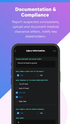 Voor professionals zoals coaches, trainers en docenten, transformeert The Concussion Tracker de benadering van hersenschuddingen. U kunt verdachte gevallen snel en gedetailleerd vastleggen, inclusief de mogelijkheid om direct meldingen te doen aan gespecialiseerde Complete Concussions klinieken. Met gevalideerde neurocognitieve tests zijn directe beoordelingen langs de lijn uitvoerbaar, wat cruciaal is voor vroege interventie. Volg het herstelproces van geblesseerde sporters met gedetailleerde voortgangsregistratie, bekijk sportspecifieke oefensuggesties voor een veilig terugkeerprogramma, upload medische goedkeuringen en krijg toegang tot een schat aan educatieve materialen en richtlijnen.