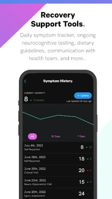 Als atleet of patiënt geeft The Concussion Tracker u de controle over uw hersteltraject. Voer regelmatige baselinemetingen en post-blessure tests uit, en krijg inzicht in uw CCMI-kliniek baselinetestresultaten. De app helpt u ook bij het vinden van de dichtstbijzijnde Complete Concussions kliniek voor deskundige zorg. Ontvang gepersonaliseerde revalidatieoefeningen en activiteitsrestricties rechtstreeks via de app, en communiceer efficiënt met uw behandelend arts door dagelijks symptomen en activiteiten te registreren. The Concussion Tracker, met de expertise van Complete Concussions, begeleidt u op een gepersonaliseerd pad naar een veilig en volledig herstel, door een naadloze verbinding tussen zelfbeheer en professionele zorg.
