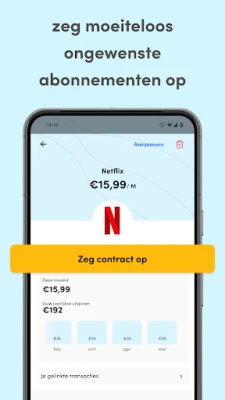 Met Dyme behoren gissingen tot het verleden. Het systeem categoriseert automatisch al je transacties, waardoor je direct ziet waar je geld naartoe vloeit. Dit vormt de basis voor moeiteloos budgetteren en helpt je jaarlijks aanzienlijk te besparen – tot wel €800 gemiddeld – door slimmere deals voor vaste lasten te vinden. Koppel veilig en eenvoudig al je bankrekeningen van gerenommeerde instellingen zoals ING, ABN Amro en Rabobank. Dyme opereert als een officiële betaaldienstverlener onder toezicht van De Nederlandsche Bank, wat de veiligheid en privacy van jouw gegevens waarborgt; we verkopen geen data. Bovendien signaleert Dyme al je abonnementen, zodat je ongewenste diensten met een paar tikken kunt opzeggen.