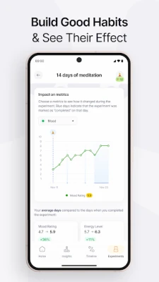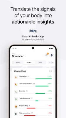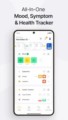 Effecto ontsluit de verborgen verbanden tussen uw dagelijkse leven en uw algehele welzijn. Deze intelligente gezondheids- en stemmingstracker biedt gepersonaliseerde inzichten die onthullen hoe gewoonten, symptomen en levensstijlfactoren met elkaar correleren. Het stelt u in staat triggers te identificeren, uw routines te optimaliseren en de regie over uw gezondheid in eigen hand te nemen. Of u nu chronische aandoeningen beheert, uw mentale gezondheid monitort, of simpelweg wilt begrijpen wat uw stemming beïnvloedt, Effecto past zich naadloos aan uw unieke behoeften aan. Met snelle dagelijkse registraties helpt Effecto u patronen te ontdekken tussen symptomen en factoren zoals medicatie, slaap en dieet, en biedt het nauwkeurige gezondheidsdata om te delen met artsen en therapeuten.