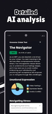 Leer jezelf en je gevoelens beter begrijpen met KnowMe - AI Personality Tests. Ontvang diepgaande AI-analyses van je sterktes, zwaktes en emotioneel profiel. Met gepersonaliseerde zelfverbeteringstips, interactieve visualisaties en voortgangsregistratie biedt KnowMe unieke inzichten voor jouw persoonlijke ontwikkeling.