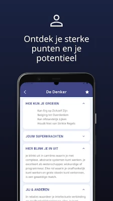Na het voltooien van deze verhelderende reis met Persoonlijkheidstest: 16 Types, ontvang je een rijkdom aan persoonlijke inzichten. Ontdek je 'superkrachten' – je inherente sterke punten – en strategieën voor persoonlijke groei om blinde vlekken te omzeilen. Krijg bovendien helderheid over loopbaantrajecten waar je natuurlijk floreert en leer hoe jouw unieke type zich verhoudt tot anderen in vriendschappen, relaties en teamverband. De applicatie biedt ook diepgaande profielen van alle 16 typen, zodat je niet alleen jezelf, maar ook je dierbaren en collega's beter kunt begrijpen.