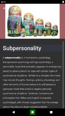 Ontdek intrigerende psychologische feiten met de gratis app "Psychological concepts". Dit gebruiksvriendelijke zakwoordenboek biedt een mooie, eenvoudige interface en is altijd binnen handbereik. Leer over concepten zoals de Duistere Triade en individualiteit.