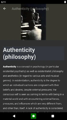 Duik diep in de fascinerende wereld van de menselijke psyche met "Psychological concepts", uw ultieme, gebruiksvriendelijke metgezel. Deze applicatie is zorgvuldig samengesteld na uitgebreide studie van diverse psychologische literatuur en biedt een schat aan intrigerende feiten en definities binnen handbereik. Met een intuïtieve en verfijnde interface fungeert het als uw persoonlijke, altijd beschikbare referentiegids, ontworpen om uw begrip van gedrag, emoties en menselijke interactie te verrijken. Ontdek concepten zoals de 'Dark Triad' die malevolente persoonlijkheidskenmerken verkent, de essentie van het 'Individu' en de diepte van een 'Grensituatie'.