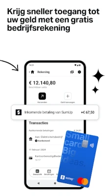 De SumUp app is meer dan alleen een betaaloplossing; het is een groeiversneller. Creëer in slechts enkele stappen uw eigen professionele webshop direct vanuit de app, en bereik direct een groter publiek, zonder enige technische voorkennis. Houd de vinger aan de pols met real-time verkooprapporten die waardevolle inzichten bieden in uw bedrijfsprestaties en toekomstige ontwikkelingen. Stimuleer loyaliteit door gepersonaliseerde digitale cadeaubonnen aan te bieden en hun saldo gemakkelijk te beheren. En voor complete financiële overzichten, opent u met SumUp een gratis bedrijfsrekening, compleet met een contactloze Mastercard, om al uw zakelijke uitgaven overzichtelijk te volgen en te beheren, zonder verborgen kosten.